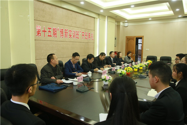 開班典禮由曾仁權教授主持,趙智華副主任首先宣讀了第十五期“博新實訓”班學員名單;隨后學員代表龐雅藝代表全體同學做熱情洋溢的發言;然后王峰董事長講話鼓勵同學們要做能干、能寫、能說、能總結的四能新人;最后左福元教授講話,左教授首先感謝思來公司從第九期至第十五期連續七年對“博新實訓”班的支持,同時為同學們提出了三點要求:第一要有精英意識、第二要為學校卓越人才培養多獻計獻策,第三要知行合一。