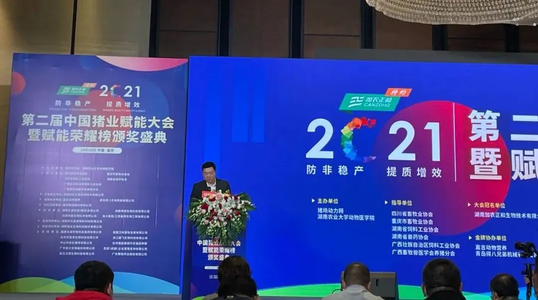 賦能豬業,榮耀有我!2021年10月19日,由豬場動力網和湖南農業大學動物醫學院主辦的第二屆中國豬業賦能大會暨賦能榮耀榜頒獎盛典在重慶融匯麗笙酒店盛大召開。眾多專家、學者、企業領導人云集會議,圍繞“防非穩產,提質增效”的會議主題,與產業鏈上下游參與者攜手共進,賦能豬業。