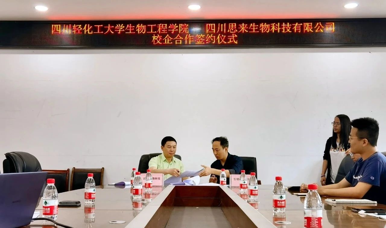 2021年5月27日,成都思來生物科技有限公司(以下簡稱思來生物)與 四川輕化工大學生物工程學院 就“飼用益生菌產業化研究”項目在四川輕化工大學生物工程學院會議室簽訂了全面合作協議。